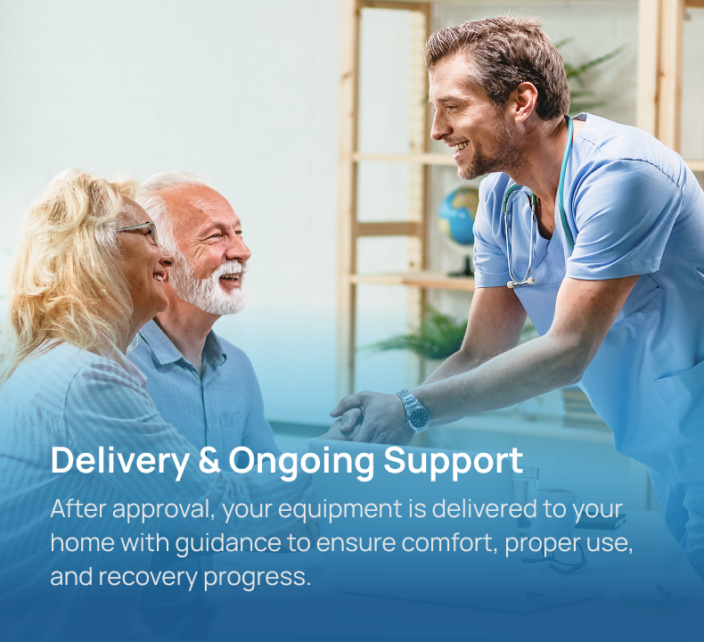 Our streamlined approach helps you get the right medical equipment without confusion or delays. From your first request to home delivery, MedCore DME supports your recovery every step of the way.